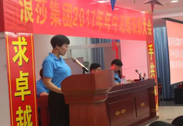 大會上,浪莎集團董事長、總經理。總裁先生分別發表了精彩講話,董事長對上半年工作做了簡要的概括,領導強調:浪莎品牌發展了22年至今,在針織行業中,已經是一艘航空母艦,是一條大船,我們同在一條船上,老板是船長,干部工人是船員,船員在船長的帶領下,齊心協力,埋頭苦干,逆勢而上,才能克服千難萬險,讓這艘船走好,走穩,走遠。