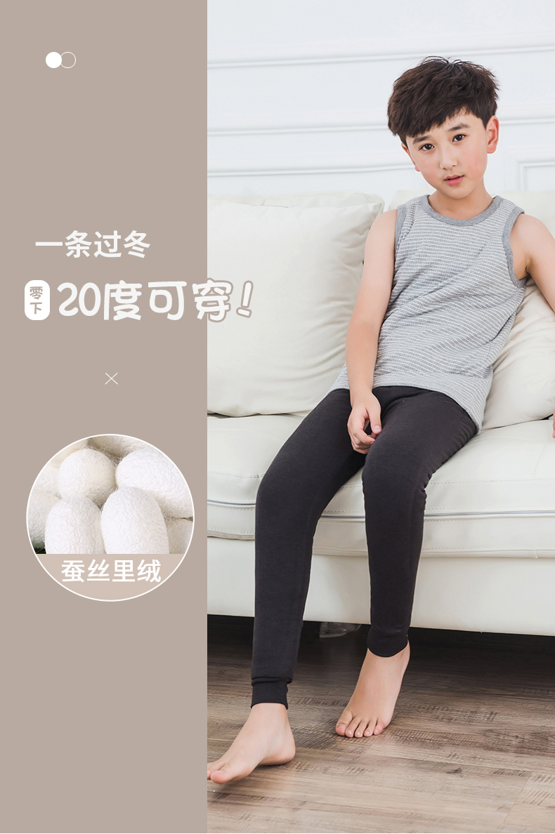 浪莎童裝男童蠶絲打底褲秋冬季中大童保暖棉褲兒童加厚加絨內(nèi)穿褲