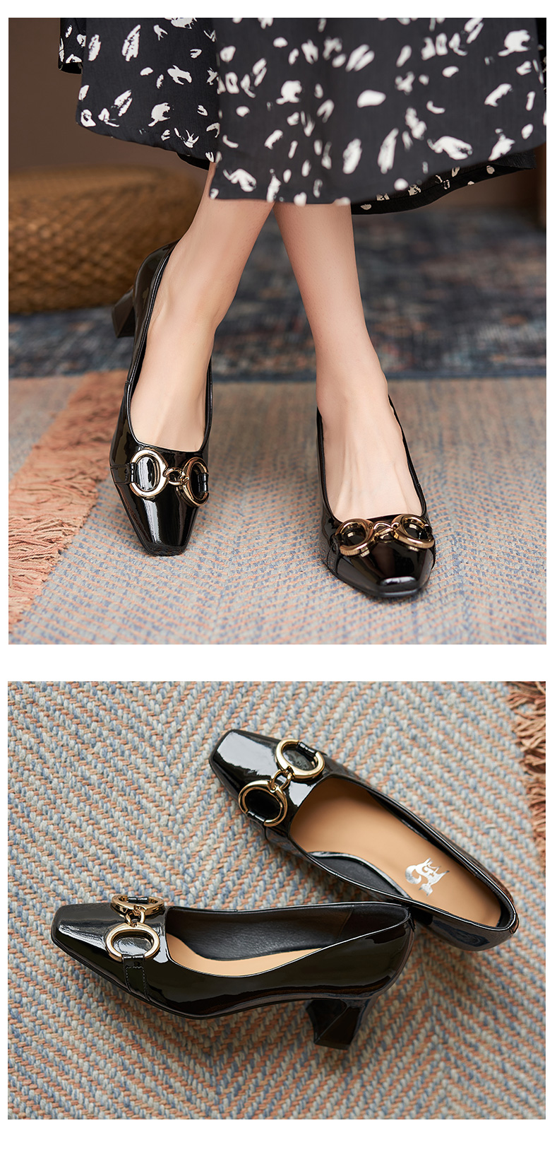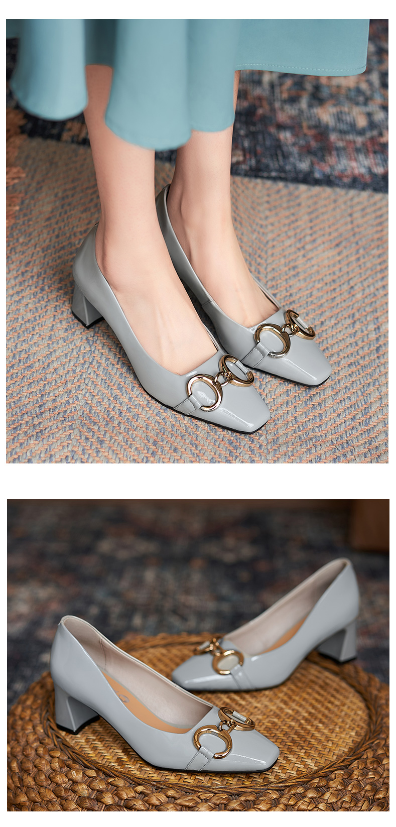淺口高跟鞋女春夏鞋子2021新款英倫小皮鞋一腳蹬方頭真皮粗跟單鞋