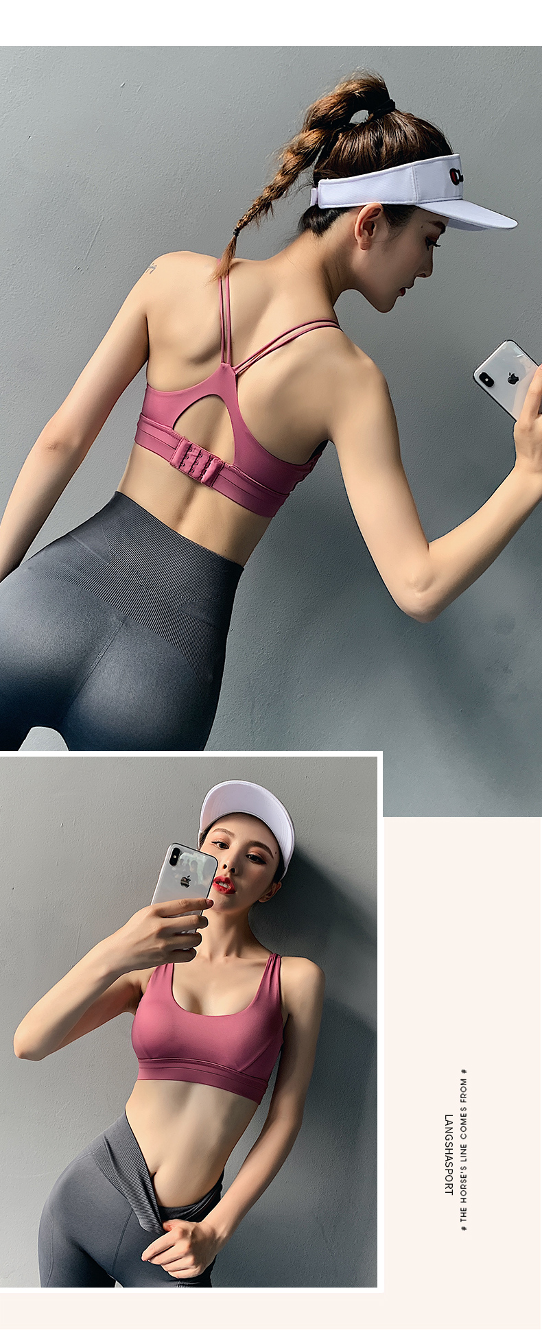 浪莎運動內衣女防震跑步聚攏定型搭扣瑜伽背心細肩帶美背健身文胸