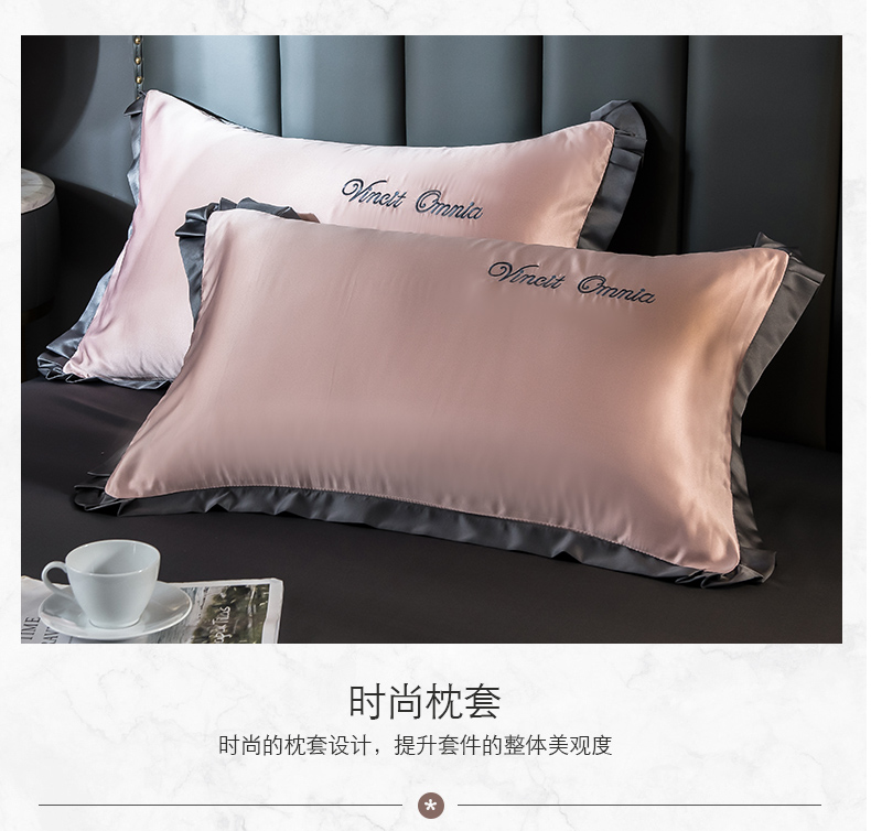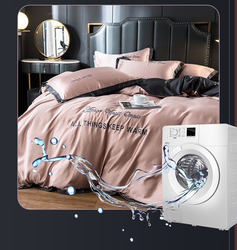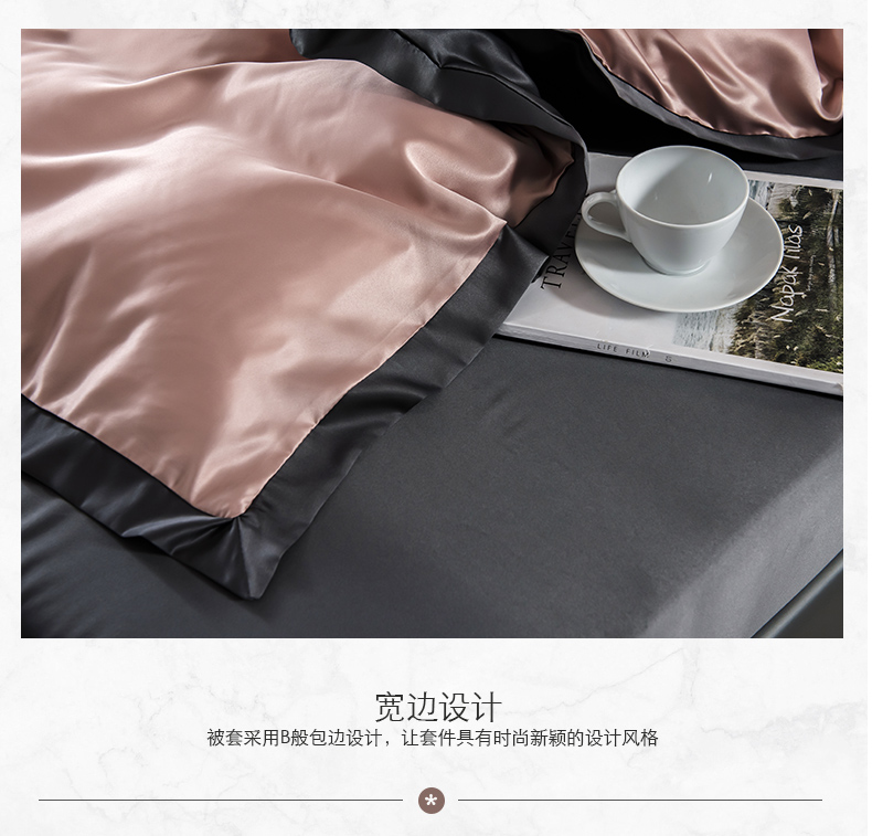 浪莎四件套水洗真絲北歐風被套床笠床單裸睡冰絲春夏秋季床上用品