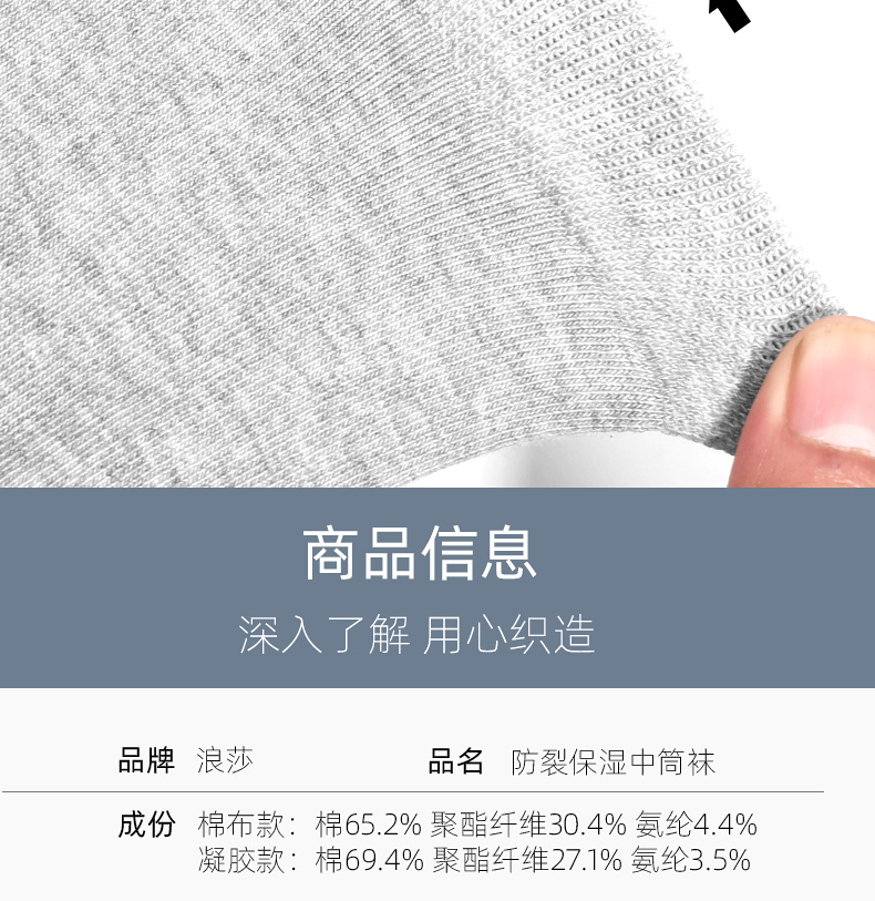 浪莎后跟防裂襪冬季防腳足裂口開裂襪子秋冬男女厚棉襪中筒干裂襪
