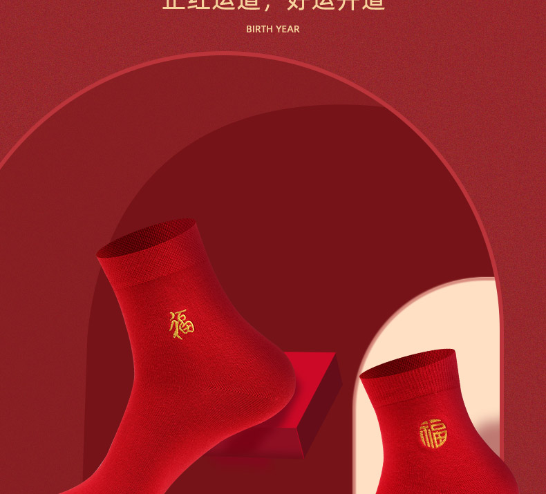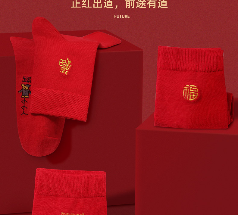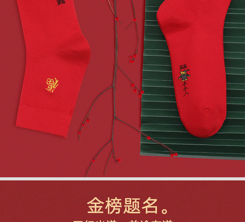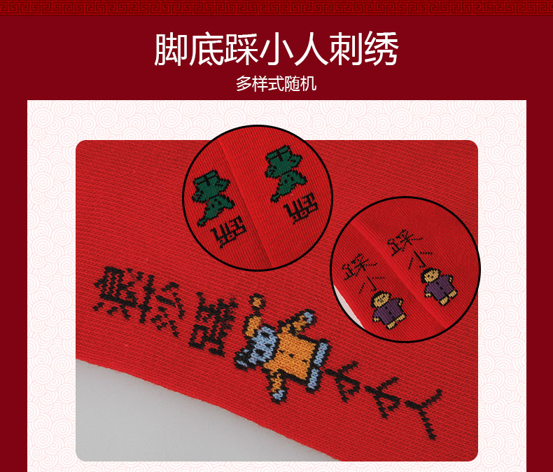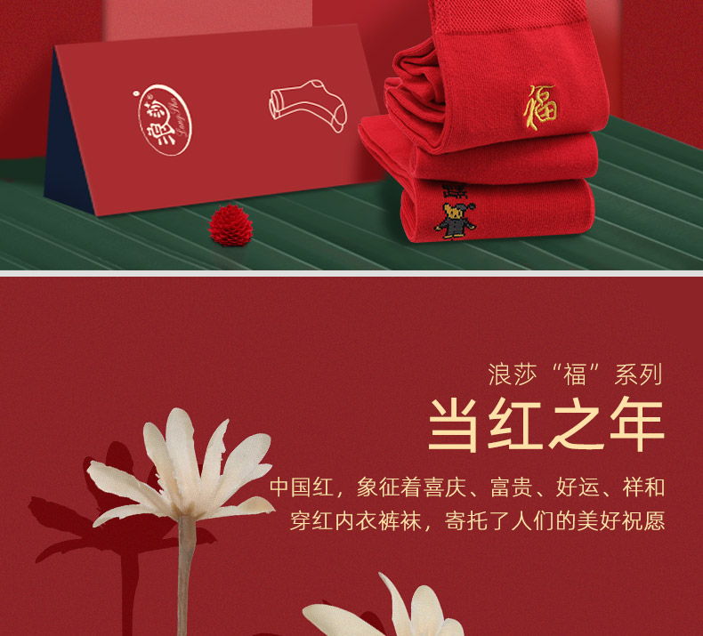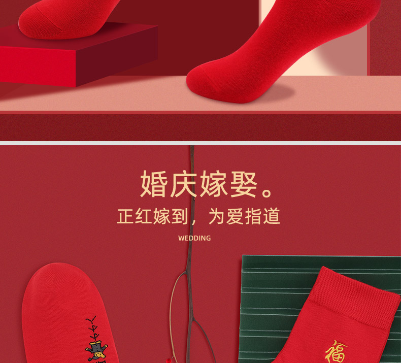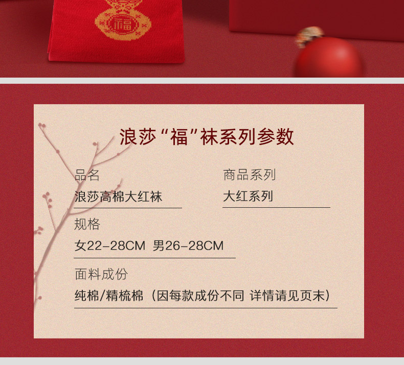 浪莎紅襪子女男士本命年純棉踩小人屬牛年結(jié)婚情侶全棉大紅色棉襪