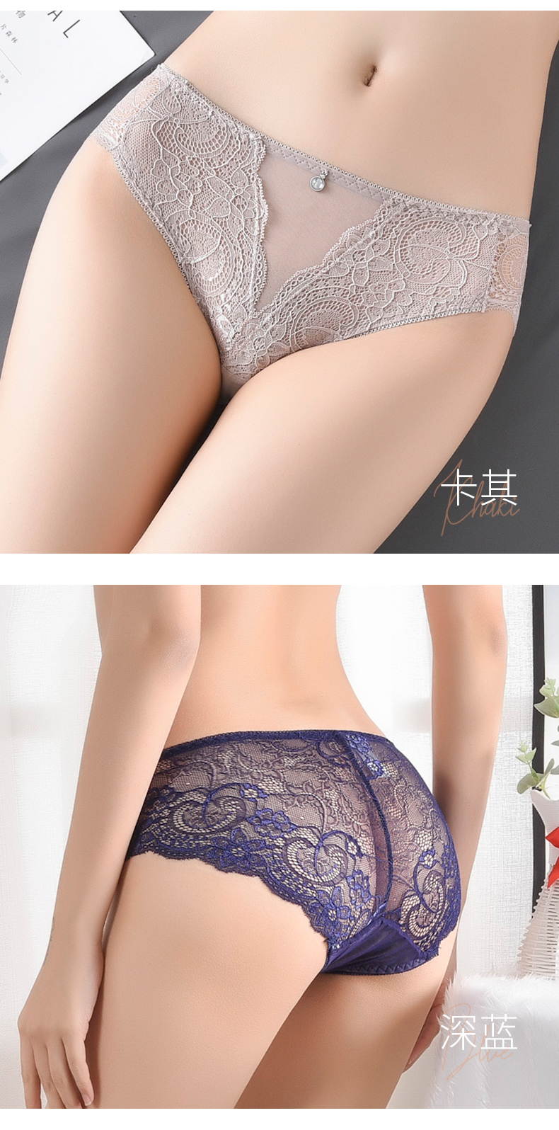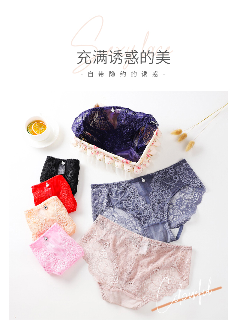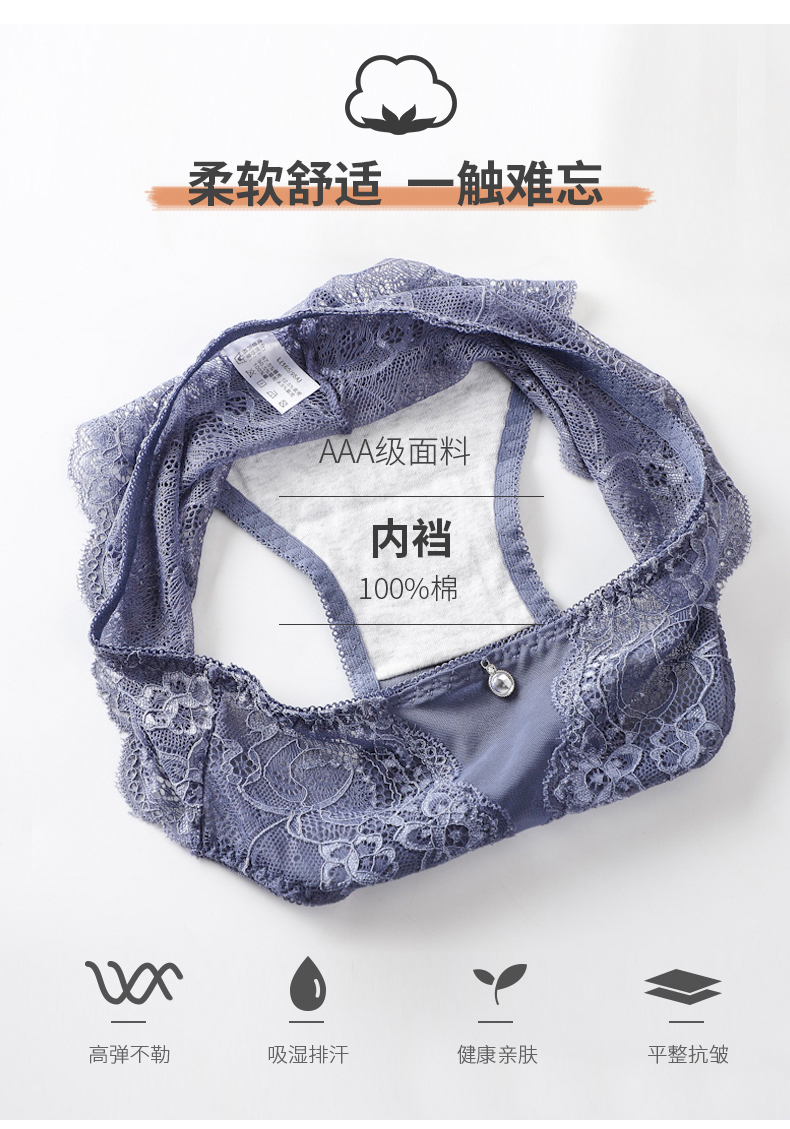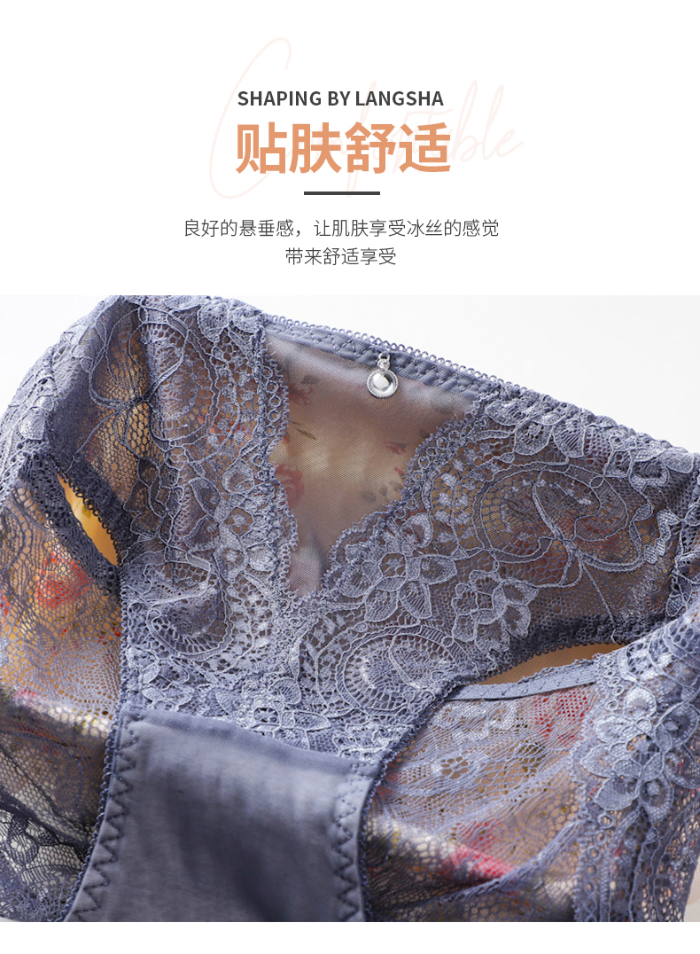 浪莎蕾絲內褲女士性惑春夏款純棉底襠性感無痕透氣鏤空三角短褲頭
