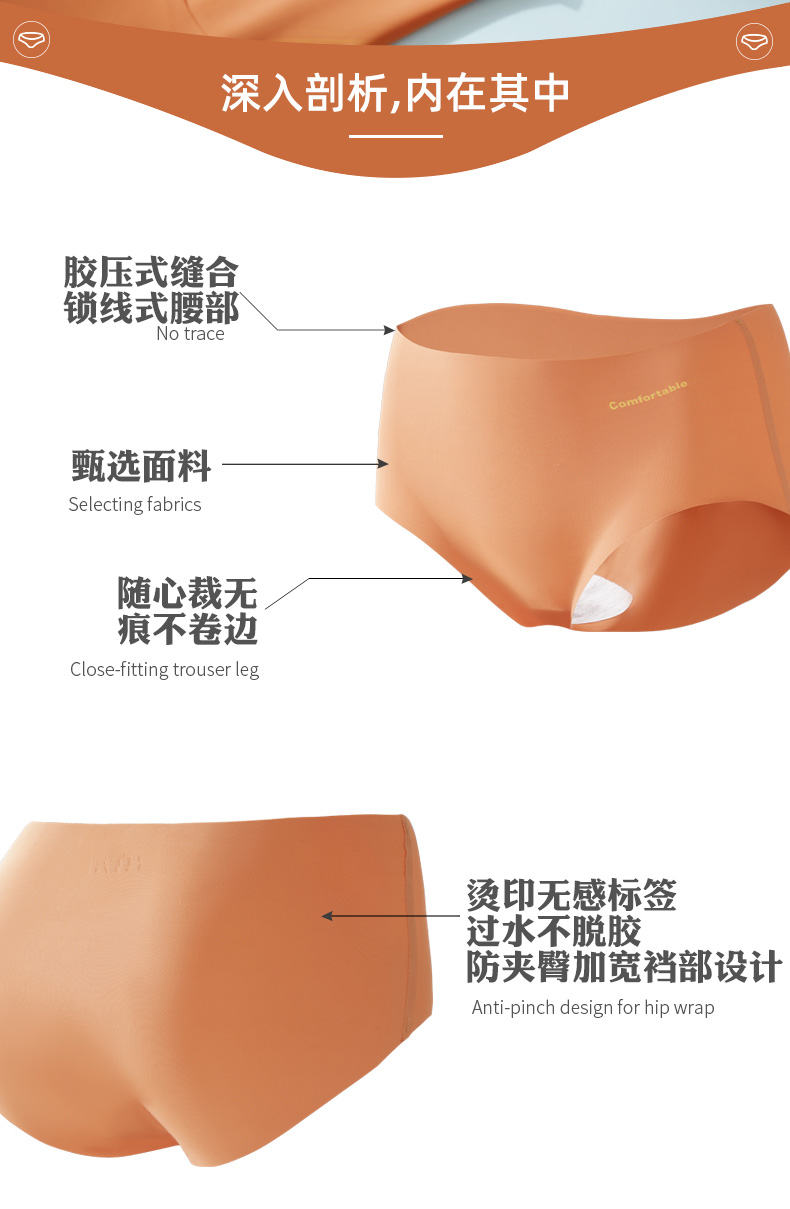 浪莎無痕內(nèi)褲女士冰絲純棉襠抗菌春夏薄透氣一片式中腰三角短褲ZW