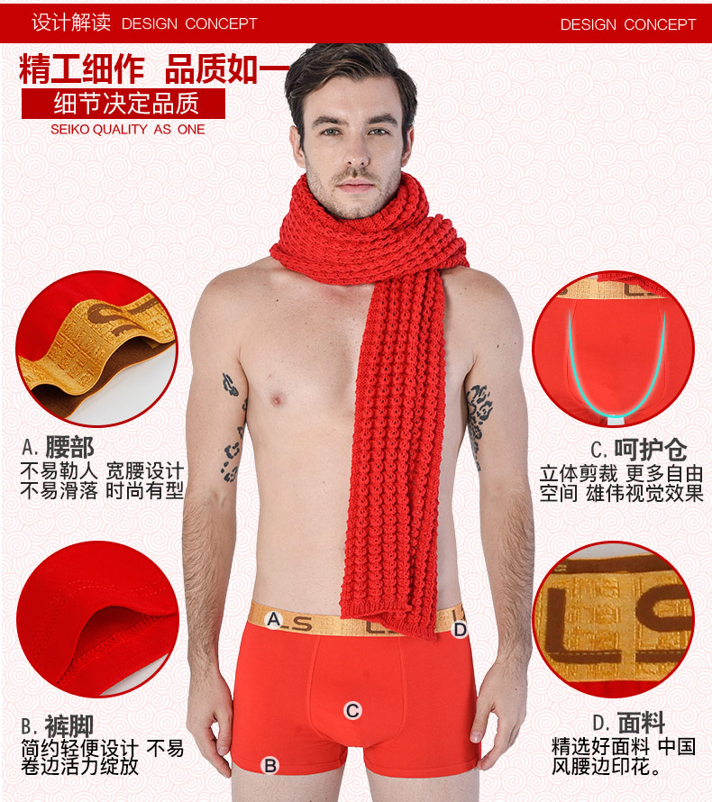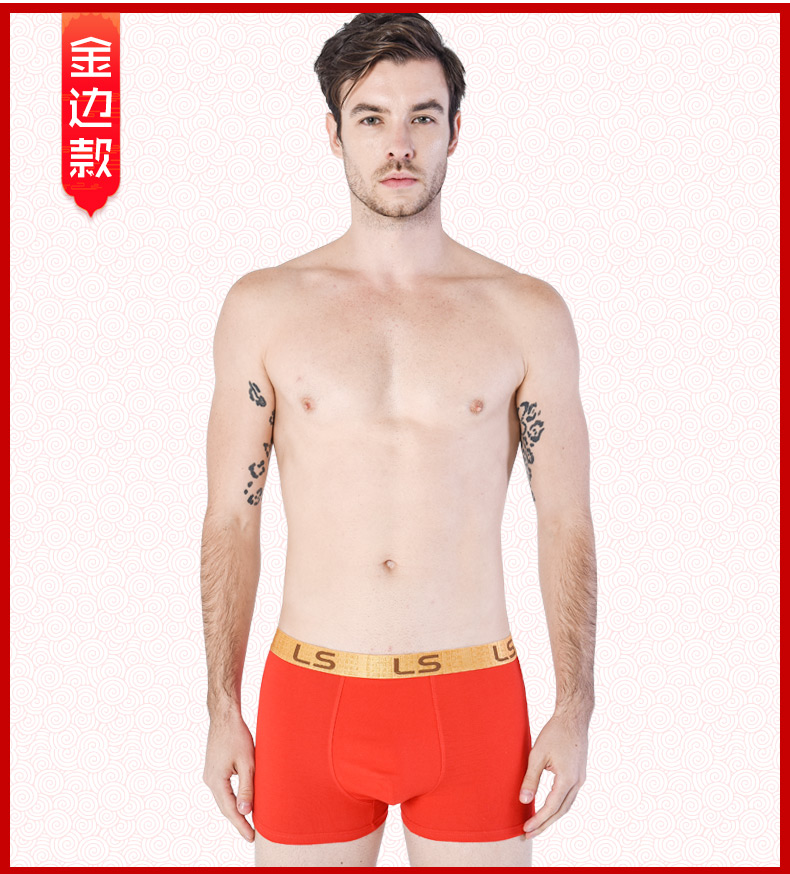 浪莎男士內(nèi)褲男純棉本命年牛四角褲紅色平角褲結(jié)婚禮物男式短褲頭